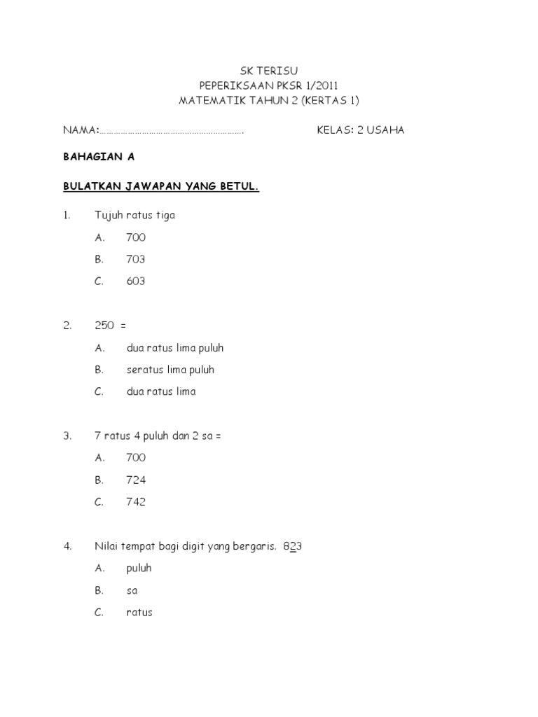 Kertas Peperiksaan Matematik Tahun 2 Pdf
